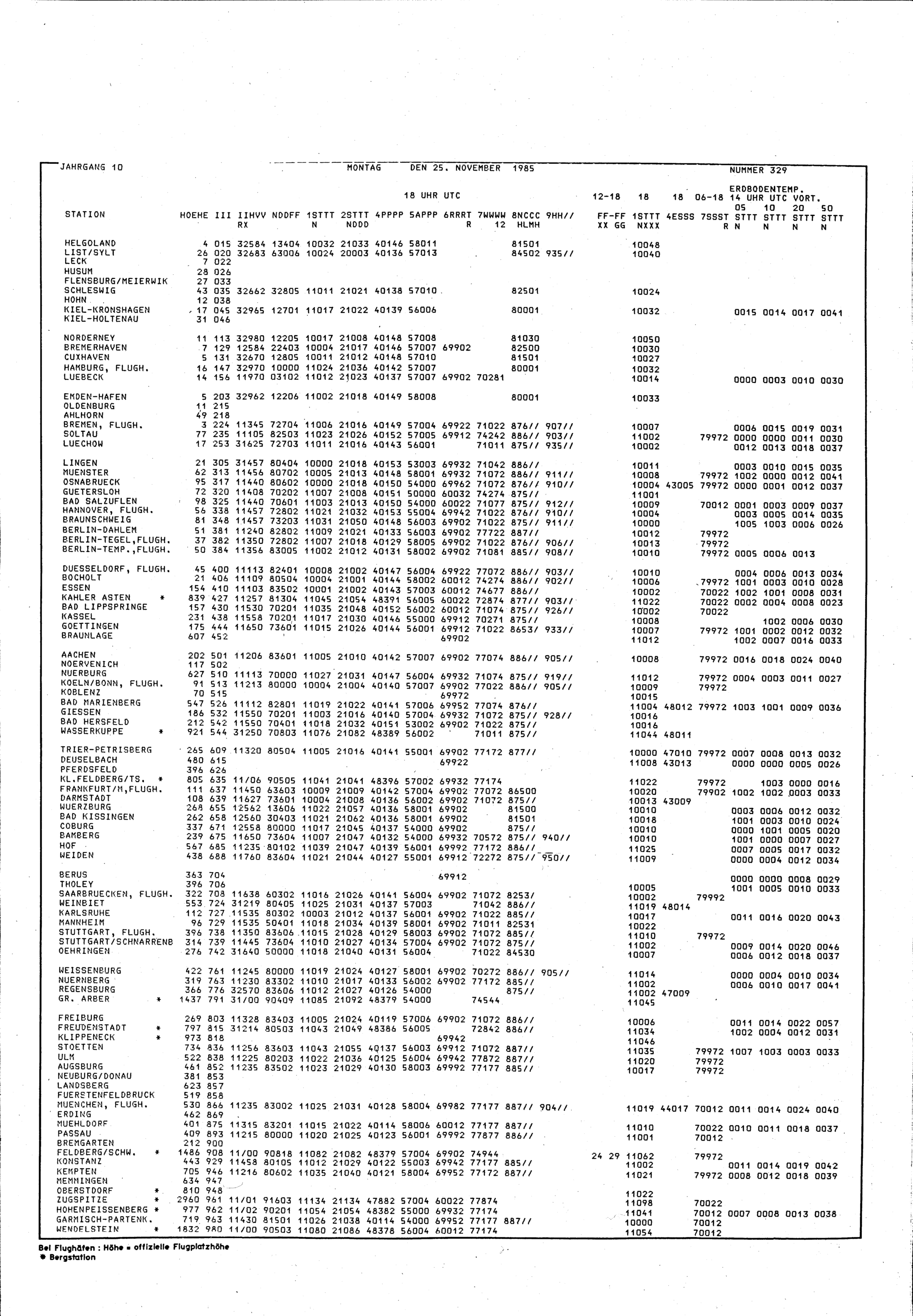 Europäischer Wetterbericht. Beilage 1, Bodenwettermeldungen. 1976-1994