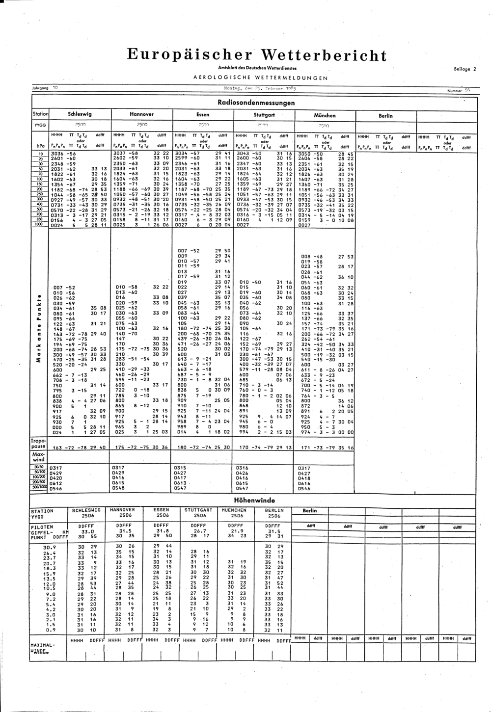 Europäischer Wetterbericht. Beilage 1, Bodenwettermeldungen. 1976-1994
