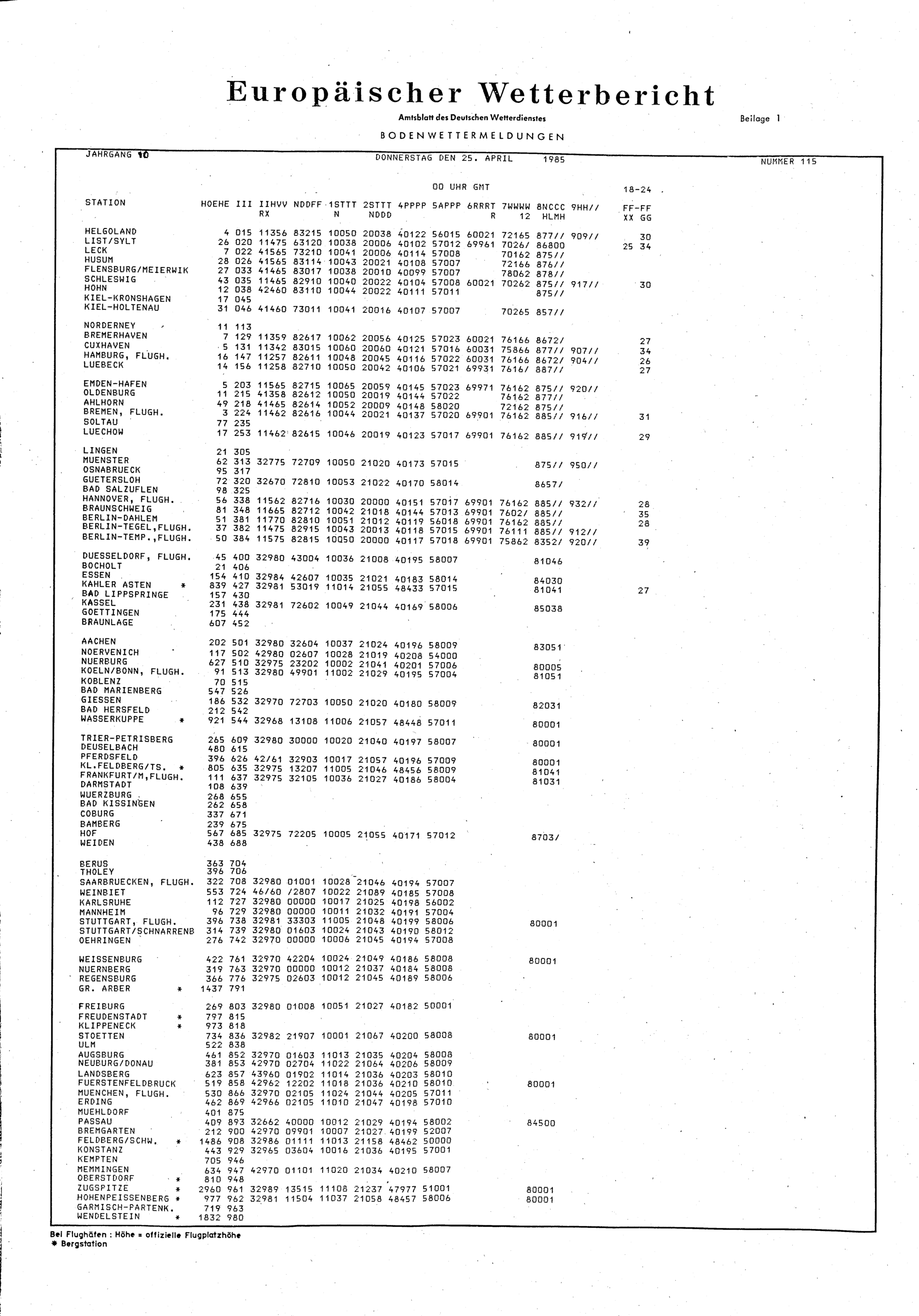 Europäischer Wetterbericht. Beilage 1, Bodenwettermeldungen. 1976-1994