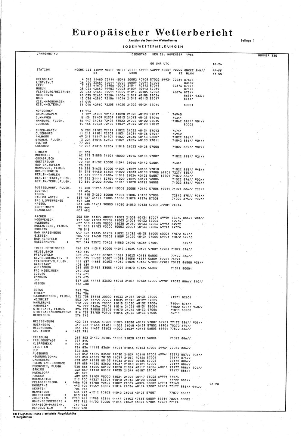Europäischer Wetterbericht. Beilage 1, Bodenwettermeldungen. 1976-1994