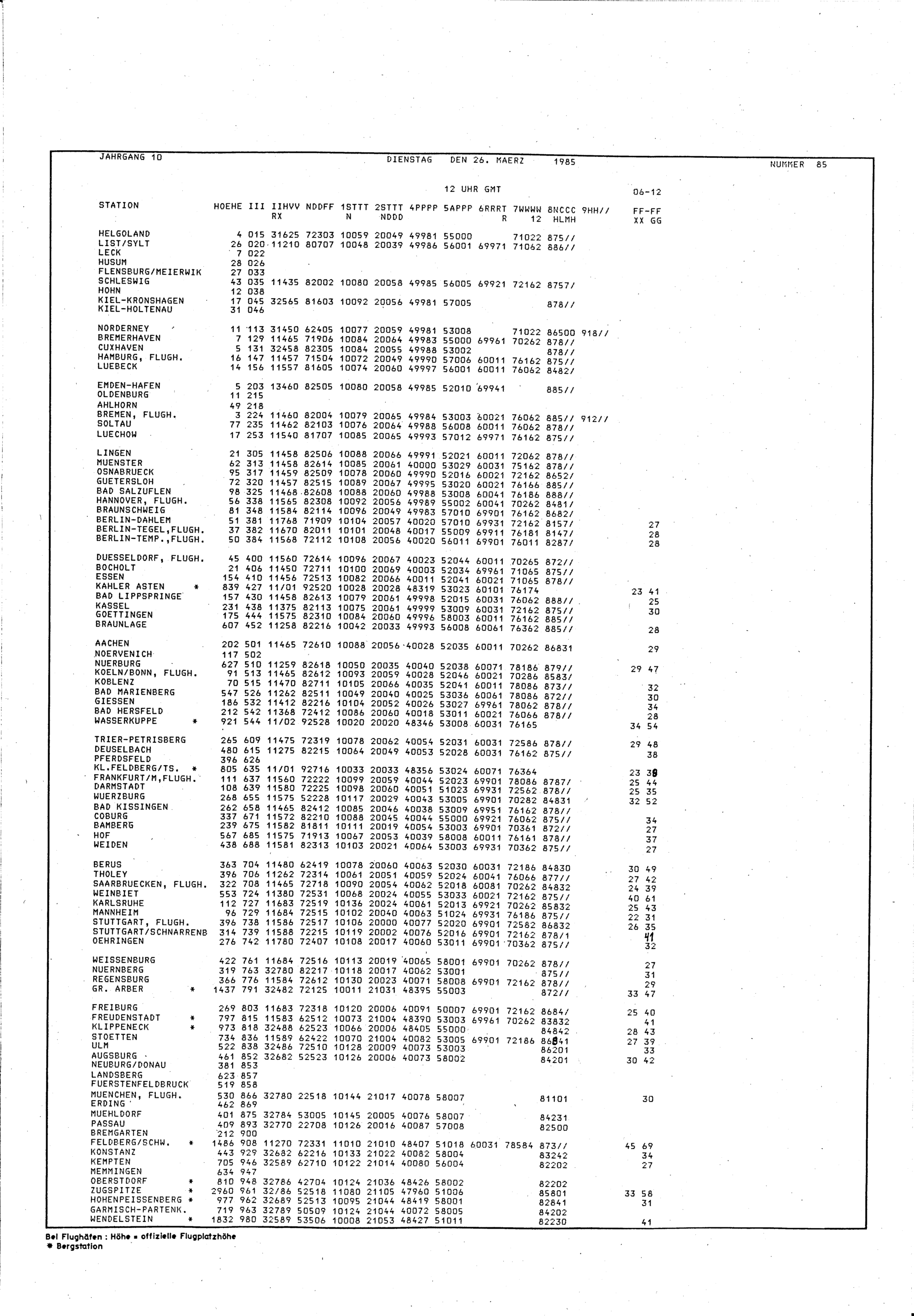 Europäischer Wetterbericht. Beilage 1, Bodenwettermeldungen. 1976-1994