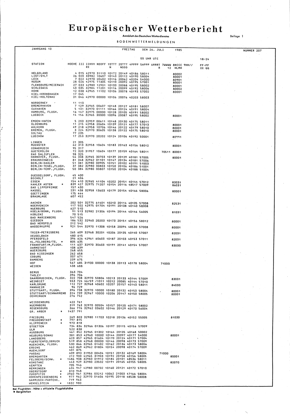 Europäischer Wetterbericht. Beilage 1, Bodenwettermeldungen. 1976-1994