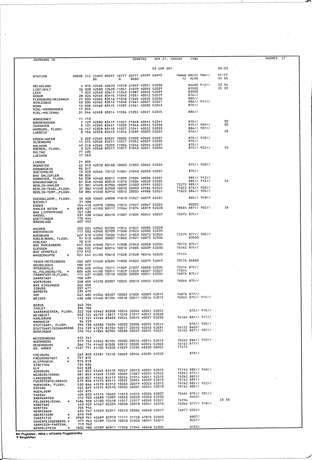 Europäischer Wetterbericht. Beilage 1, Bodenwettermeldungen. 1976-1994