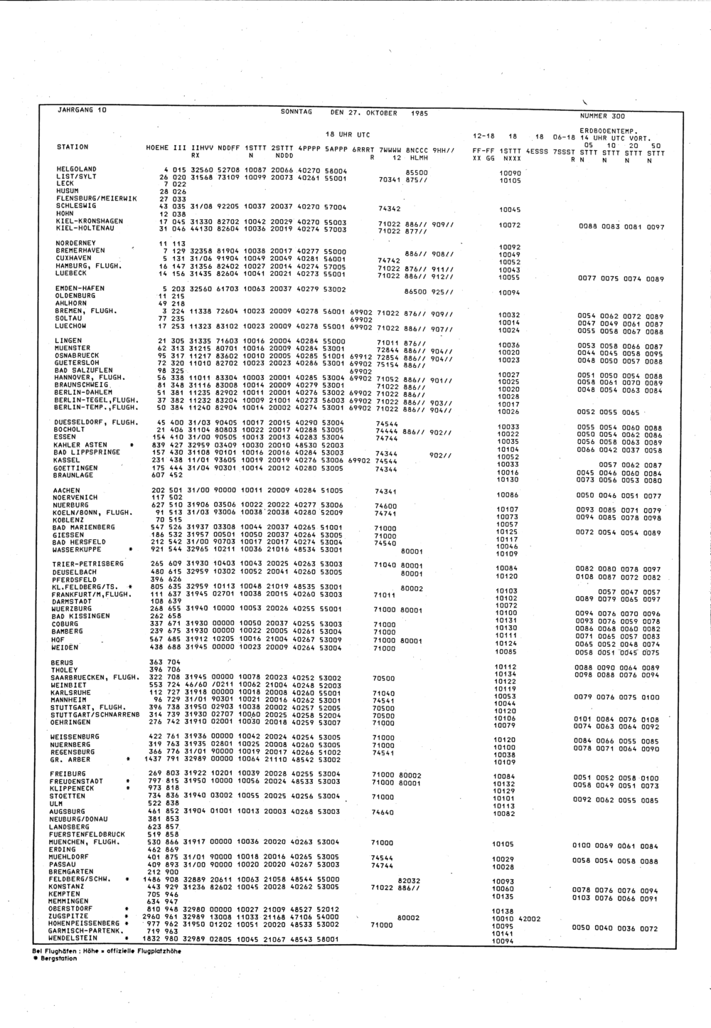 Europäischer Wetterbericht. Beilage 1, Bodenwettermeldungen. 1976-1994