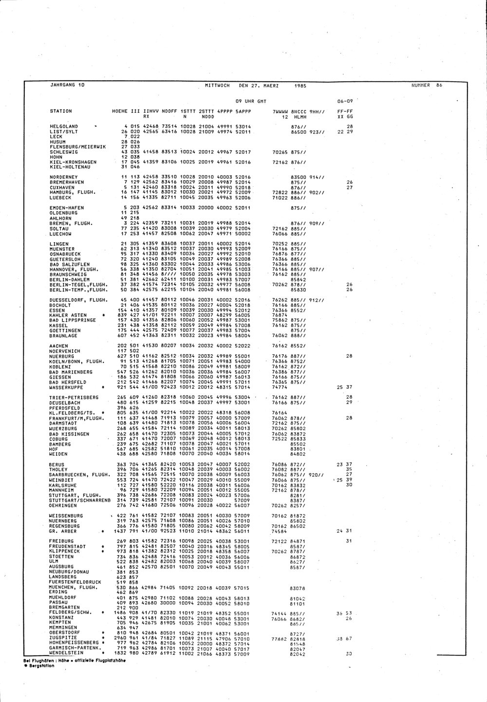Europäischer Wetterbericht. Beilage 1, Bodenwettermeldungen. 1976-1994