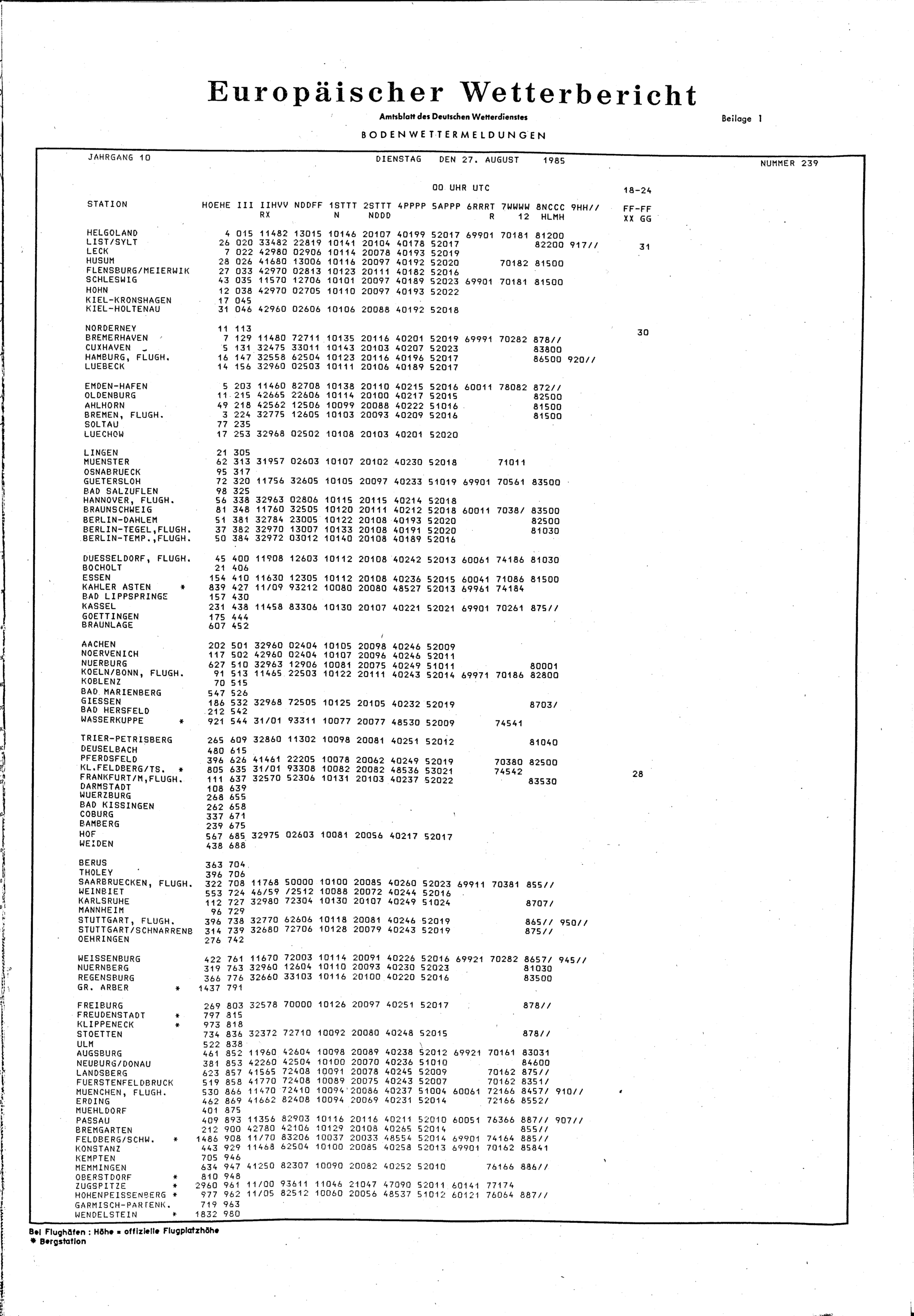 Europäischer Wetterbericht. Beilage 1, Bodenwettermeldungen. 1976-1994