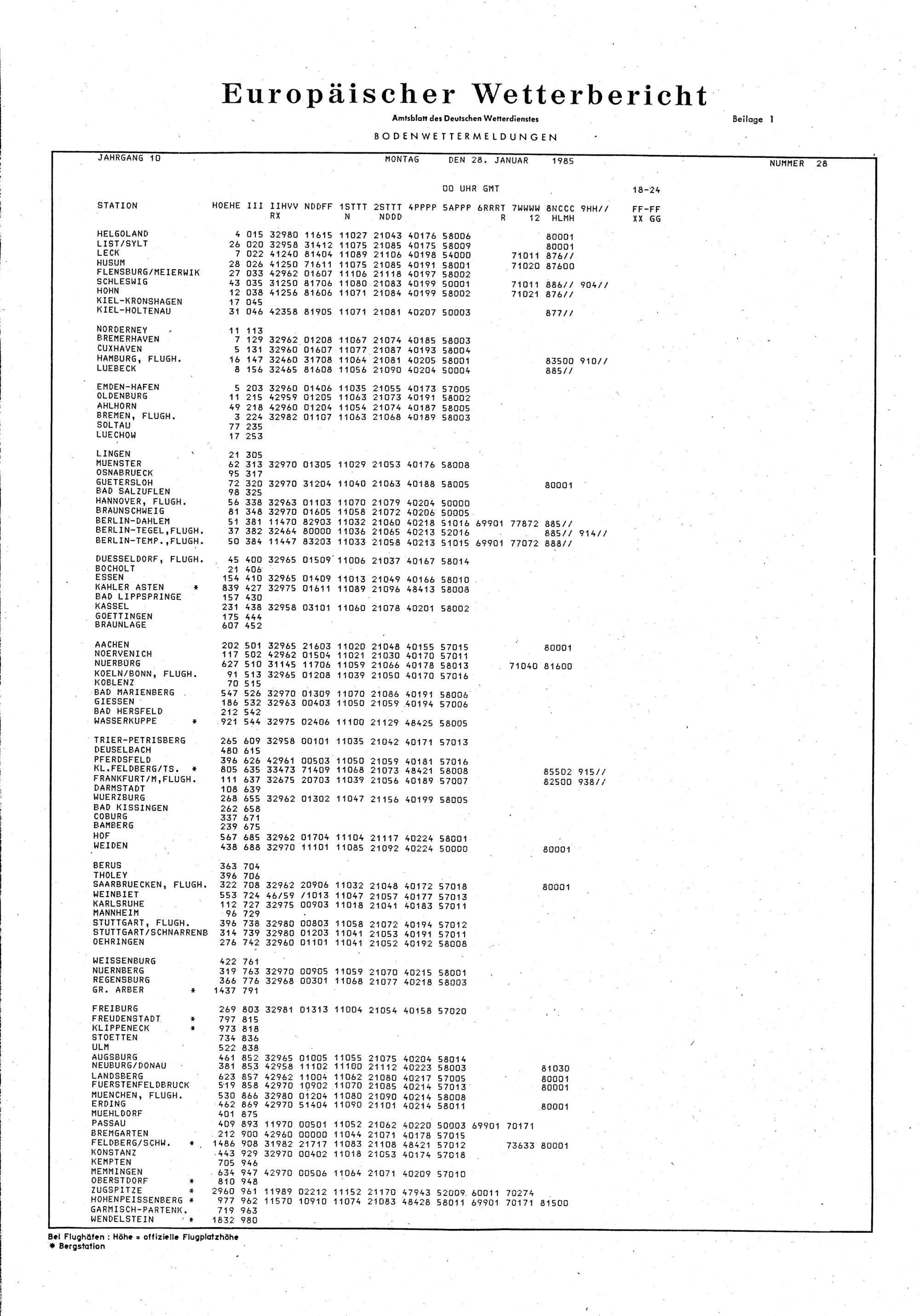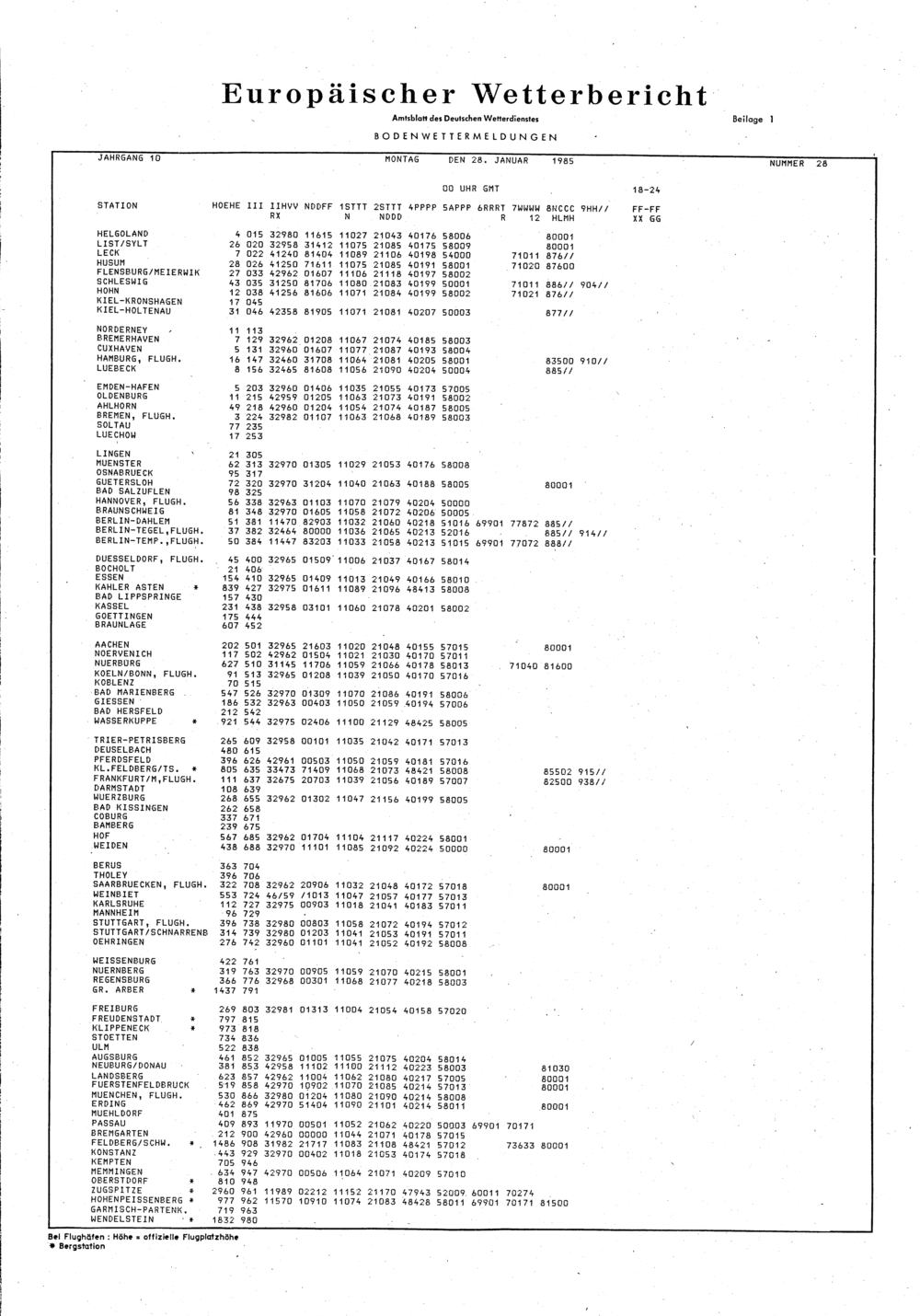 Europäischer Wetterbericht. Beilage 1, Bodenwettermeldungen. 1976-1994