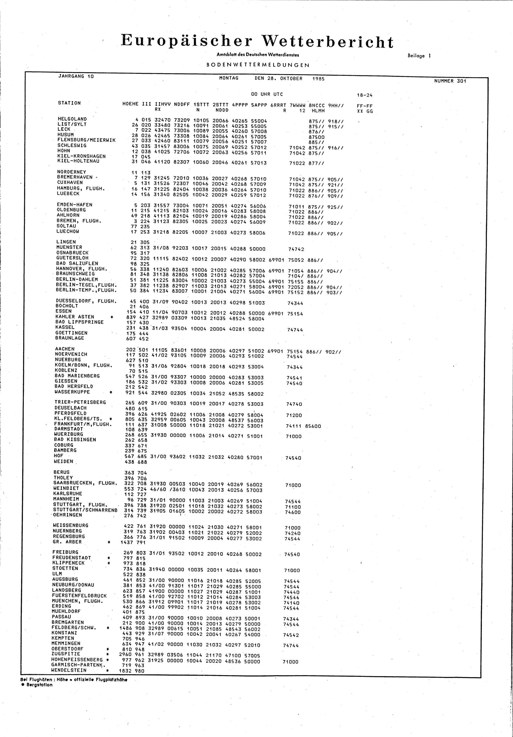 Europäischer Wetterbericht. Beilage 1, Bodenwettermeldungen. 1976-1994