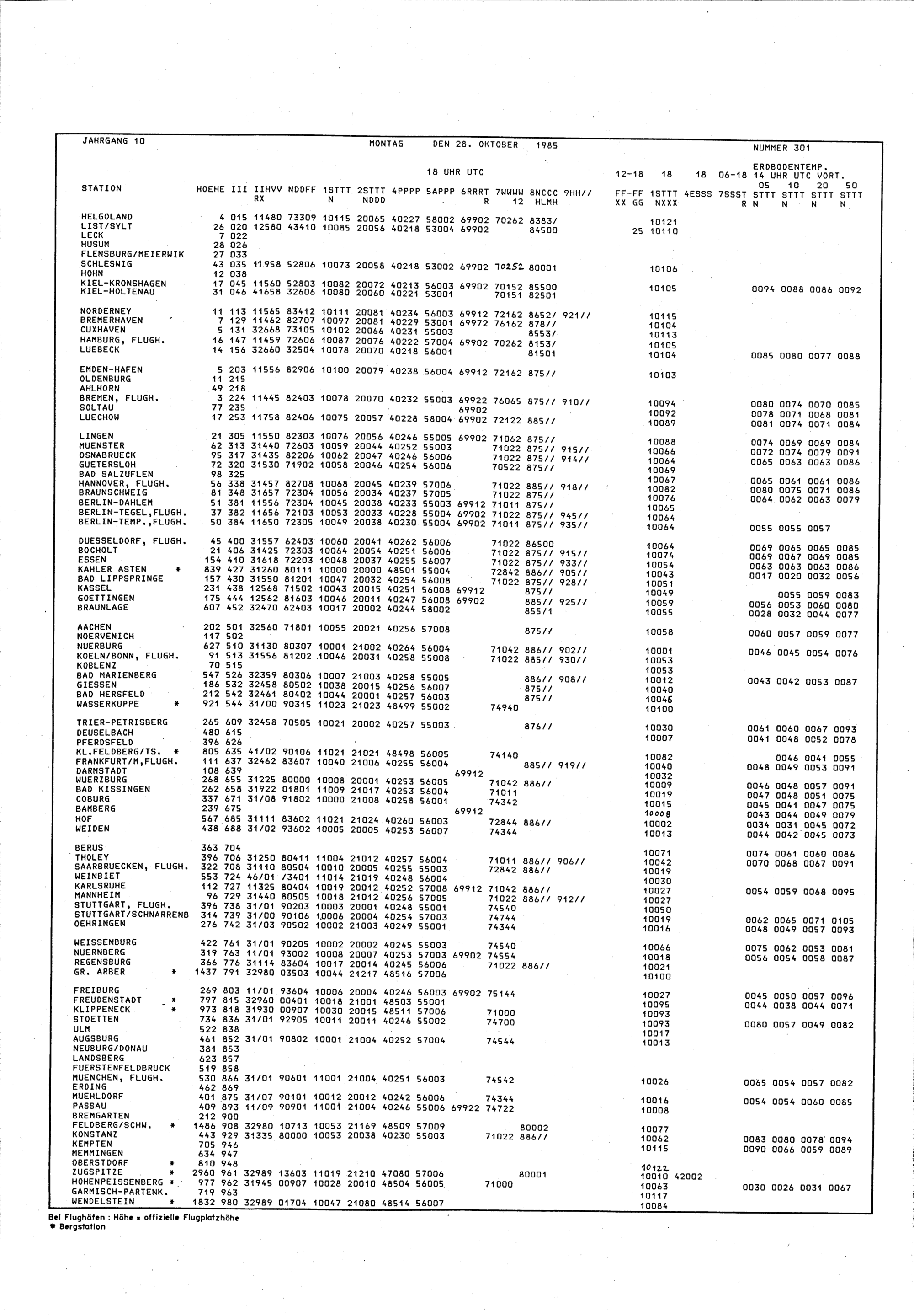 Europäischer Wetterbericht. Beilage 1, Bodenwettermeldungen. 1976-1994