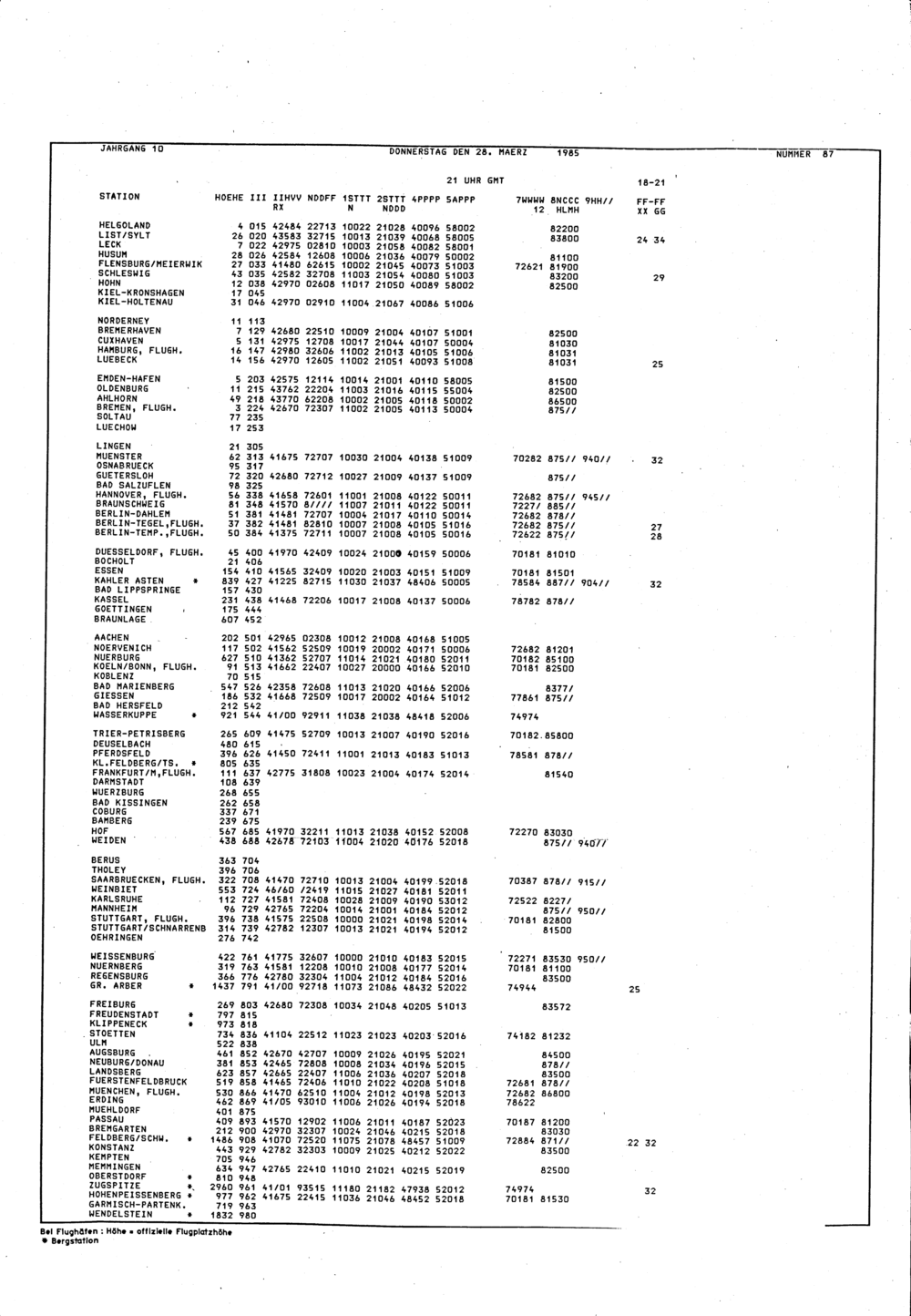 Europäischer Wetterbericht. Beilage 1, Bodenwettermeldungen. 1976-1994