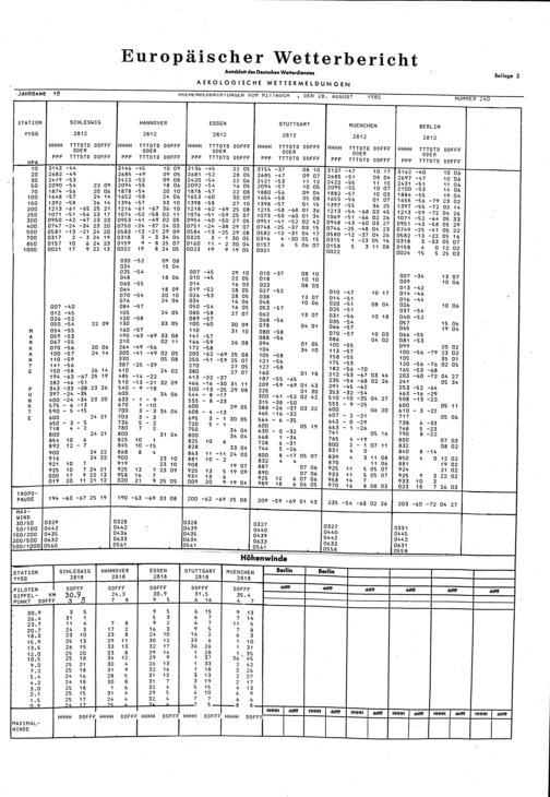 Europäischer Wetterbericht. Beilage 1, Bodenwettermeldungen. 1976-1994