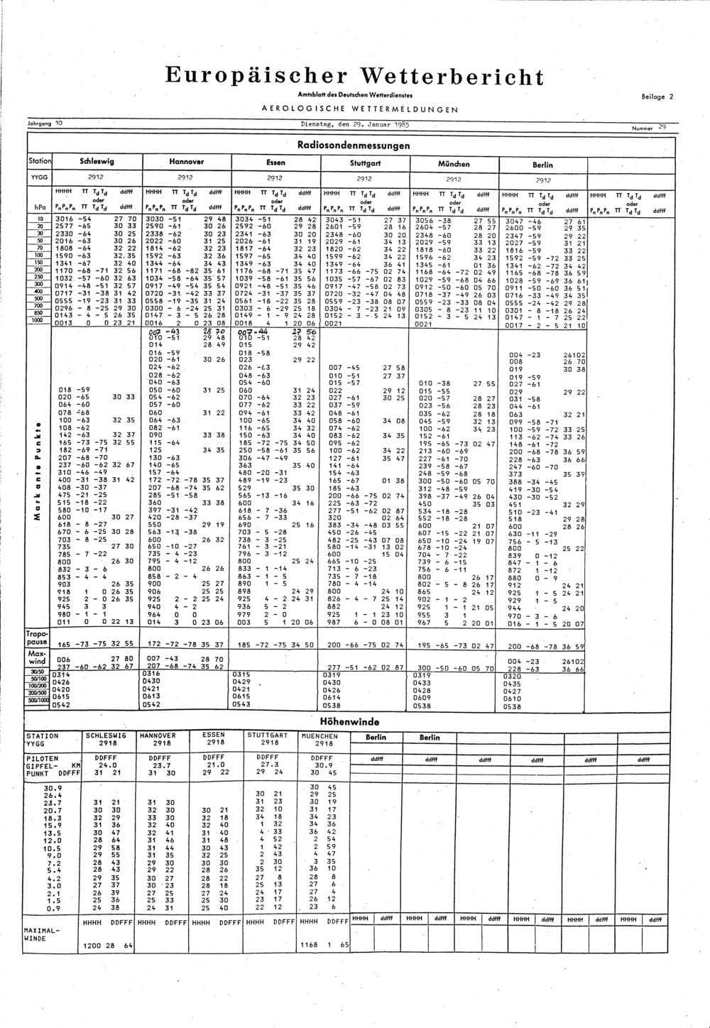 Europäischer Wetterbericht. Beilage 1, Bodenwettermeldungen. 1976-1994