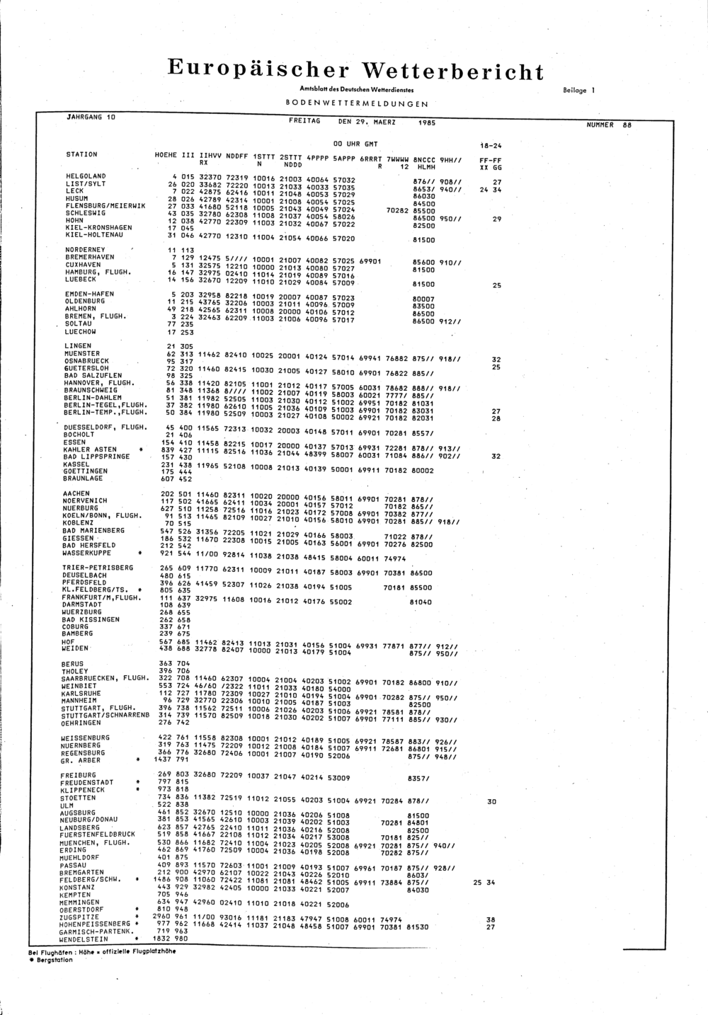 Europäischer Wetterbericht. Beilage 1, Bodenwettermeldungen. 1976-1994