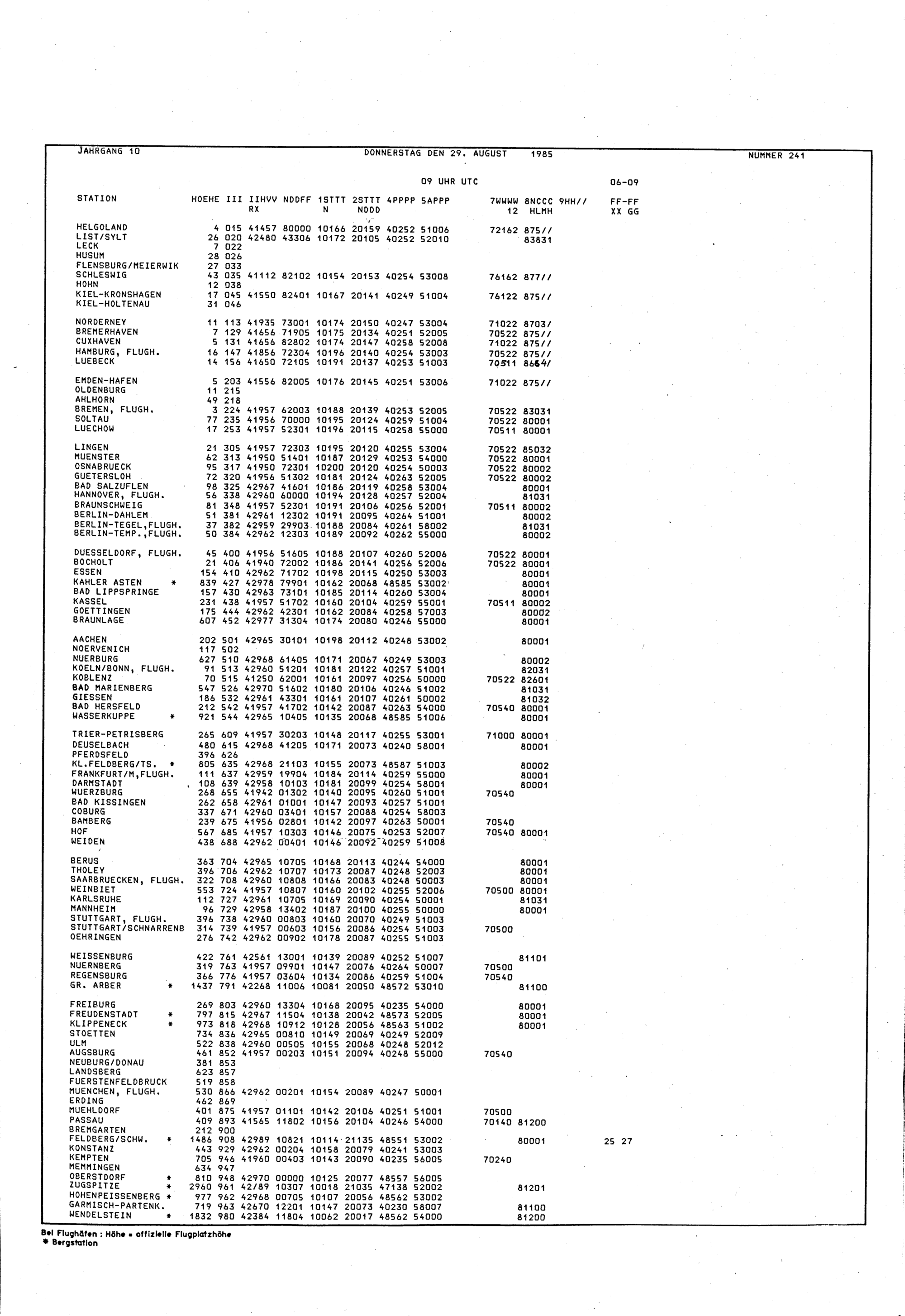 10 (29.8.1985) August. Daten