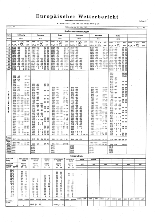 Europäischer Wetterbericht. Beilage 1, Bodenwettermeldungen. 1976-1994