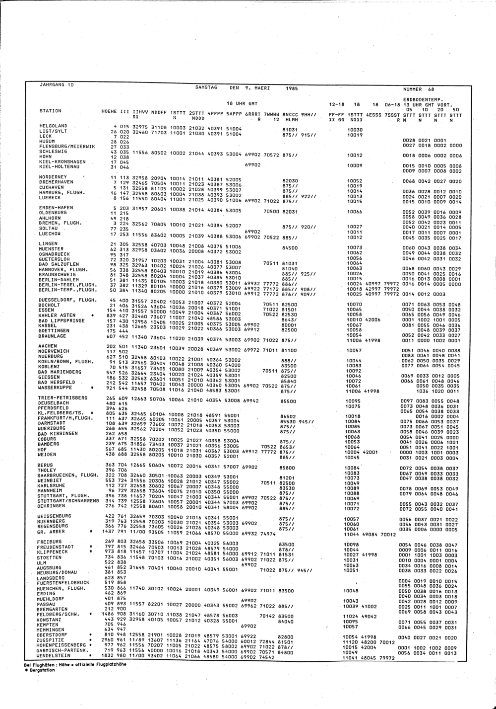 Europäischer Wetterbericht. Beilage 1, Bodenwettermeldungen. 1976-1994
