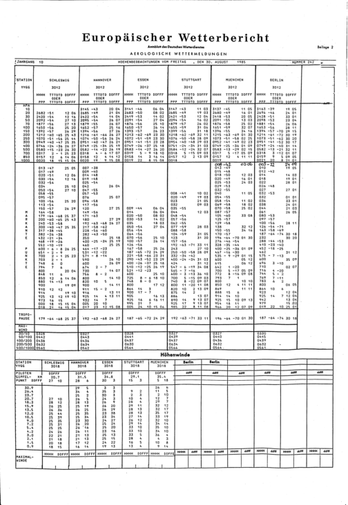 Europäischer Wetterbericht. Beilage 1, Bodenwettermeldungen. 1976-1994
