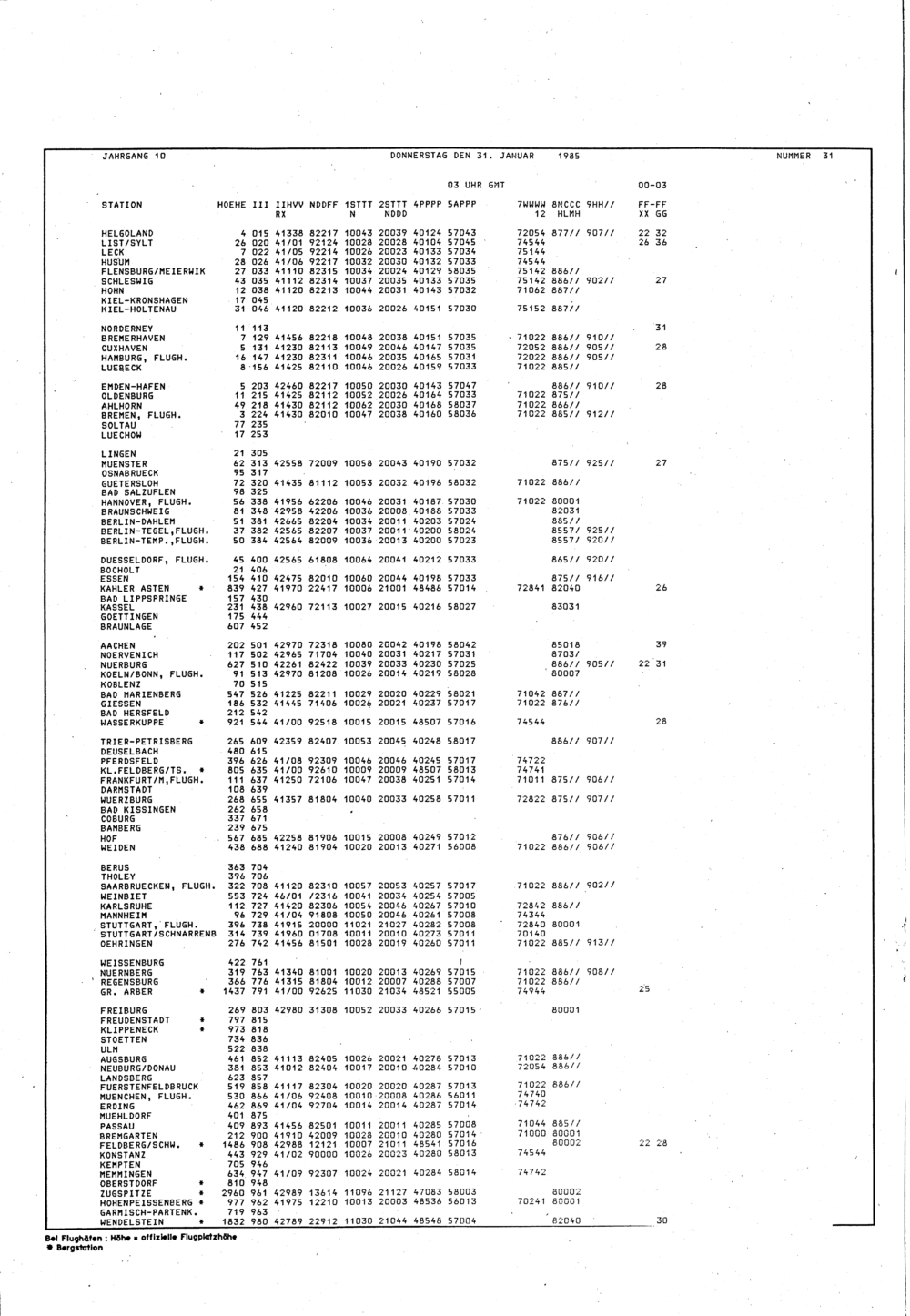 Europäischer Wetterbericht. Beilage 1, Bodenwettermeldungen. 1976-1994