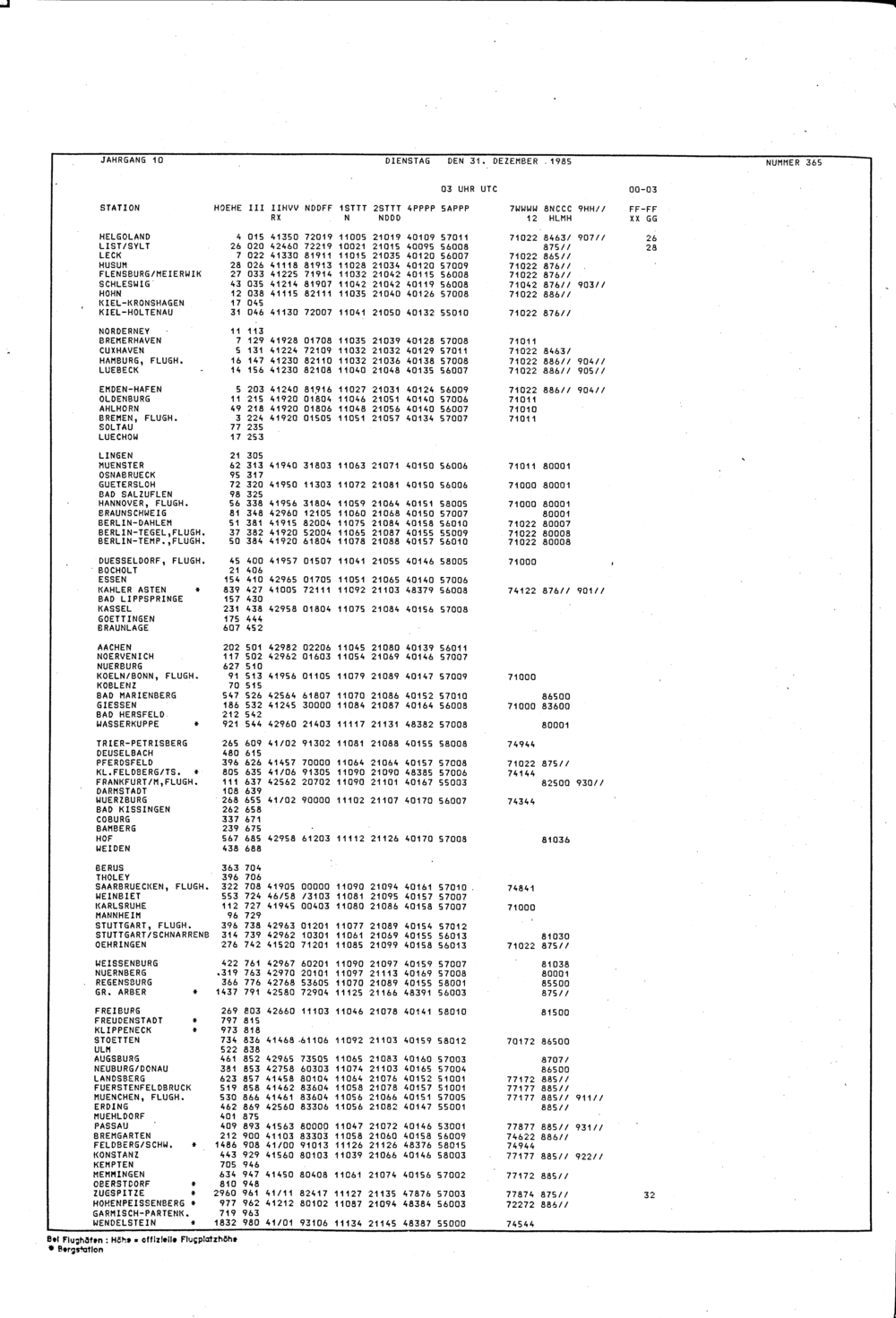 Europäischer Wetterbericht. Beilage 1, Bodenwettermeldungen. 1976-1994