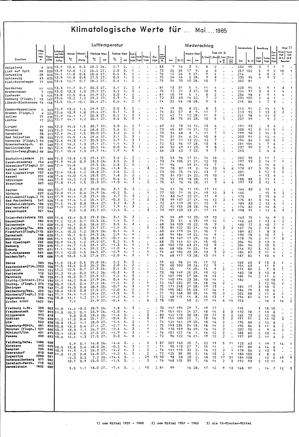 Europäischer Wetterbericht. Beilage 1, Bodenwettermeldungen. 1976-1994