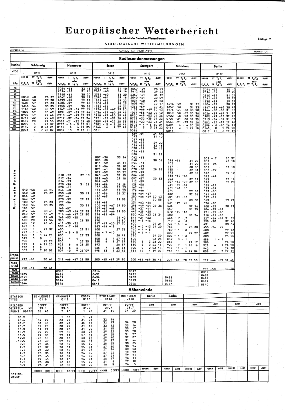 Europäischer Wetterbericht. Beilage 1, Bodenwettermeldungen. 1976-1994