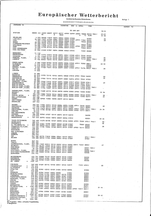 Europäischer Wetterbericht. Beilage 1, Bodenwettermeldungen. 1976-1994