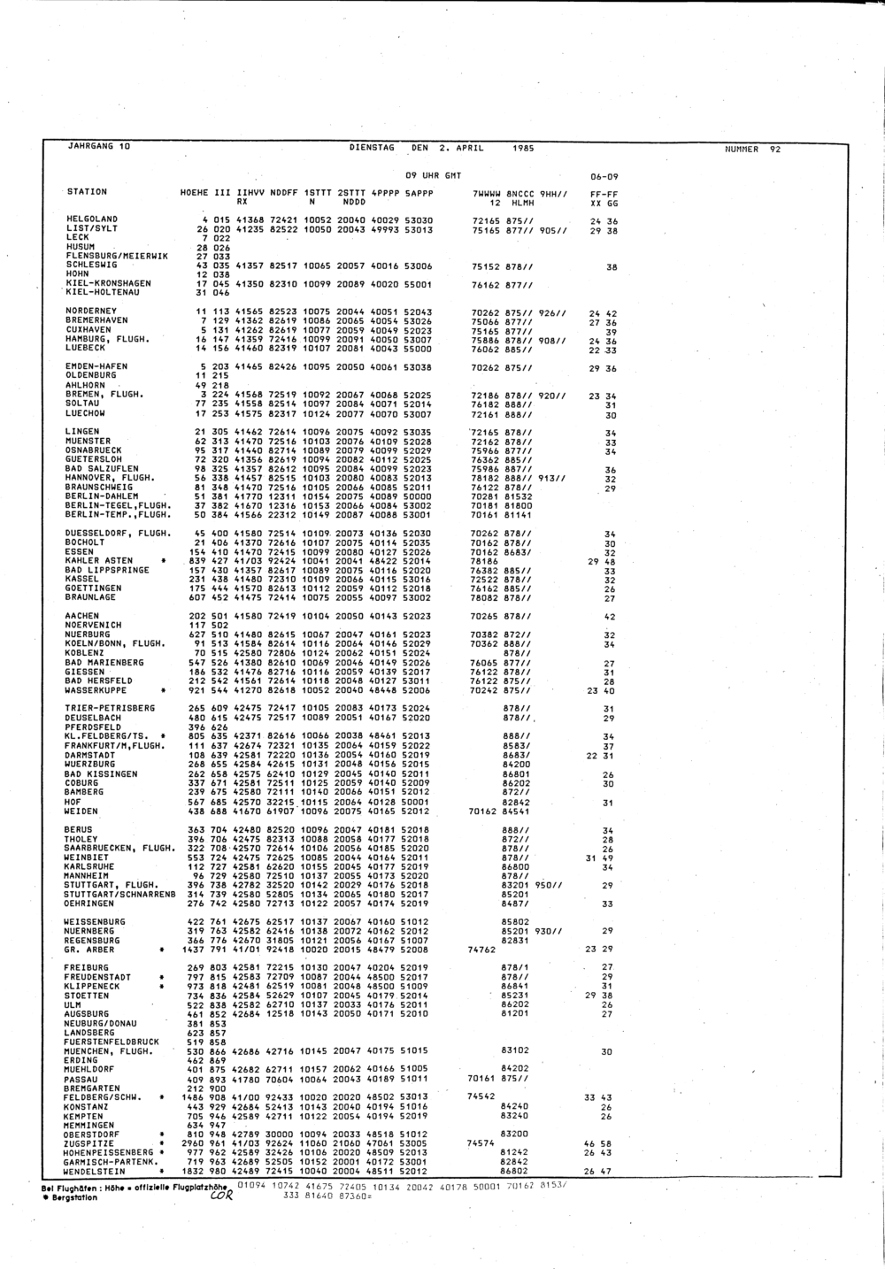 Europäischer Wetterbericht. Beilage 1, Bodenwettermeldungen. 1976-1994