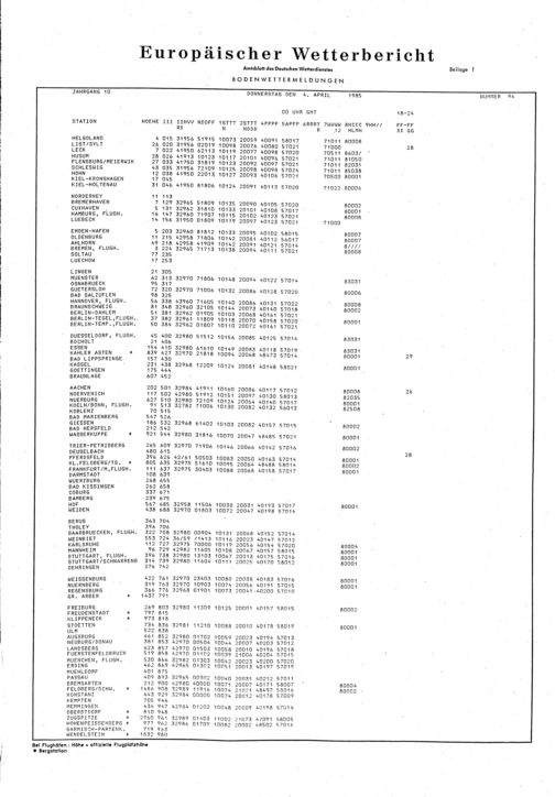 Europäischer Wetterbericht. Beilage 1, Bodenwettermeldungen. 1976-1994