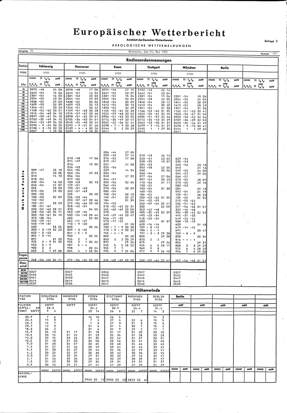 Europäischer Wetterbericht. Beilage 1, Bodenwettermeldungen. 1976-1994
