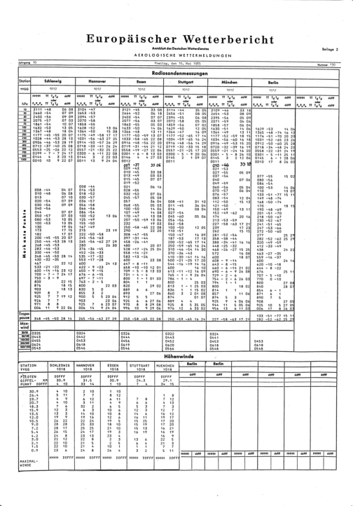 Europäischer Wetterbericht. Beilage 1, Bodenwettermeldungen. 1976-1994