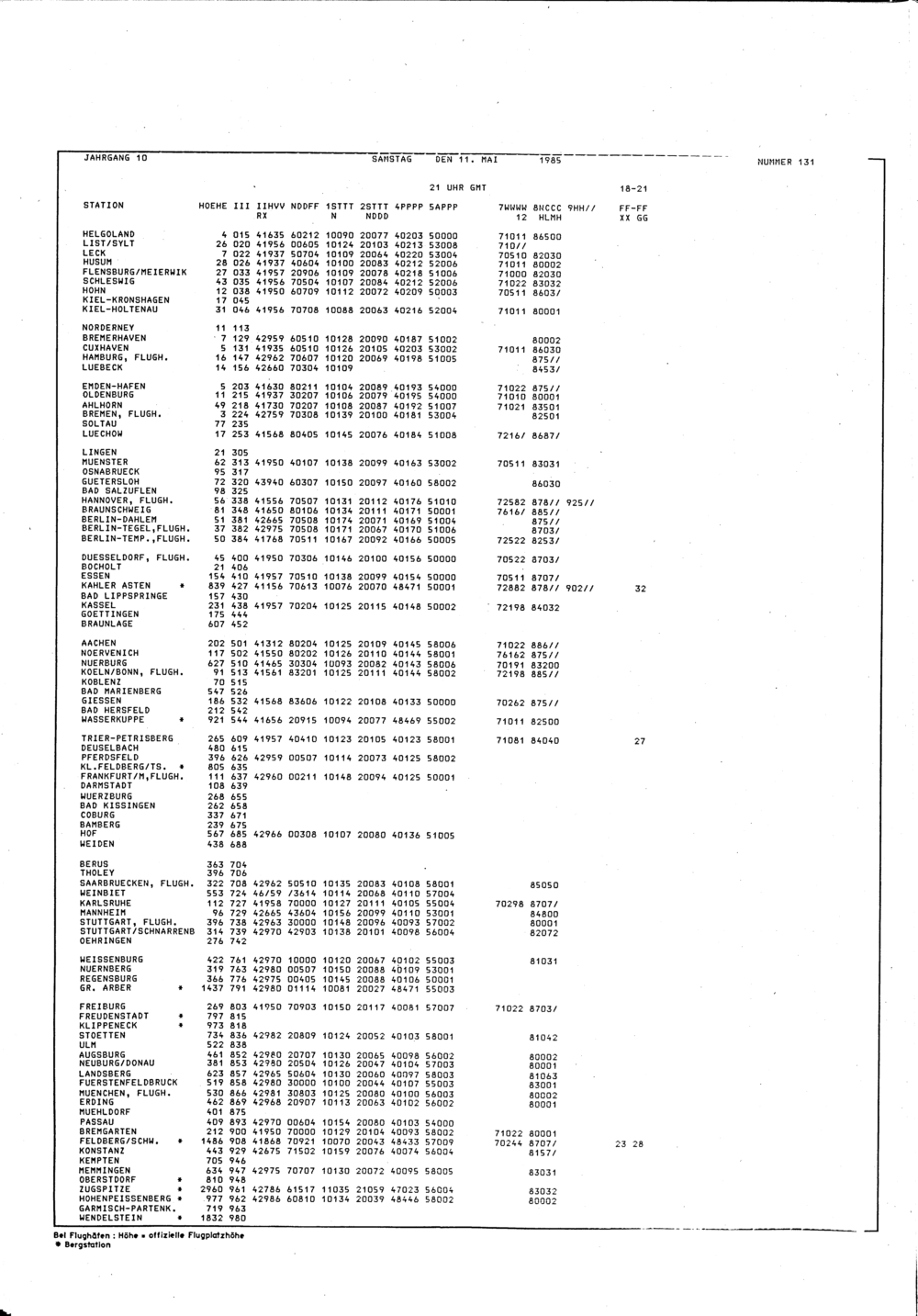 Europäischer Wetterbericht. Beilage 1, Bodenwettermeldungen. 1976-1994