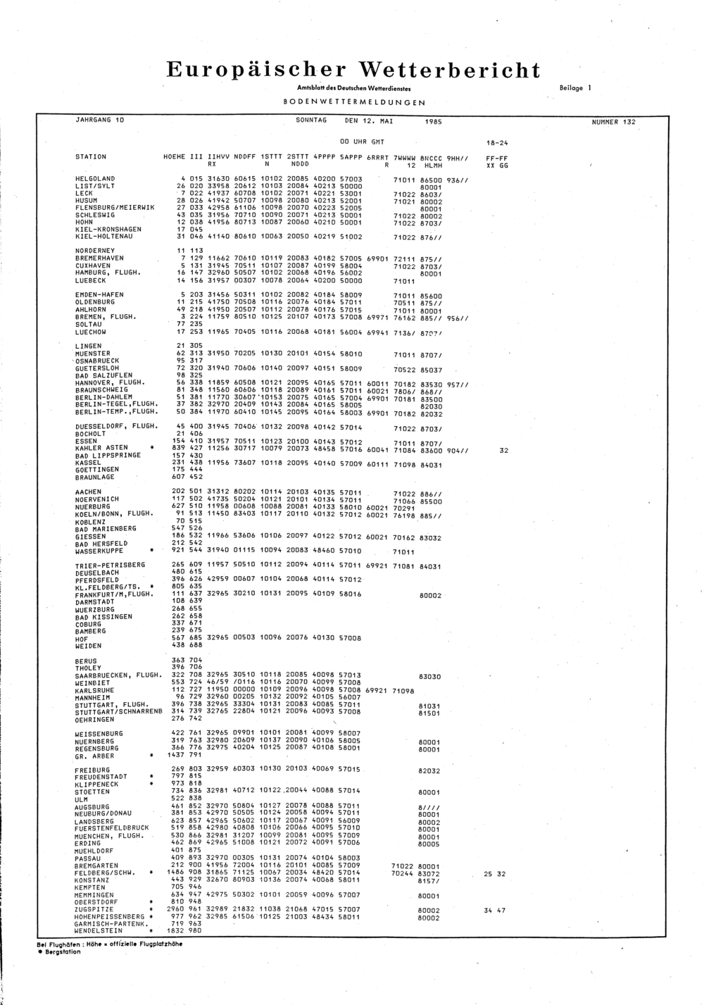 Europäischer Wetterbericht. Beilage 1, Bodenwettermeldungen. 1976-1994
