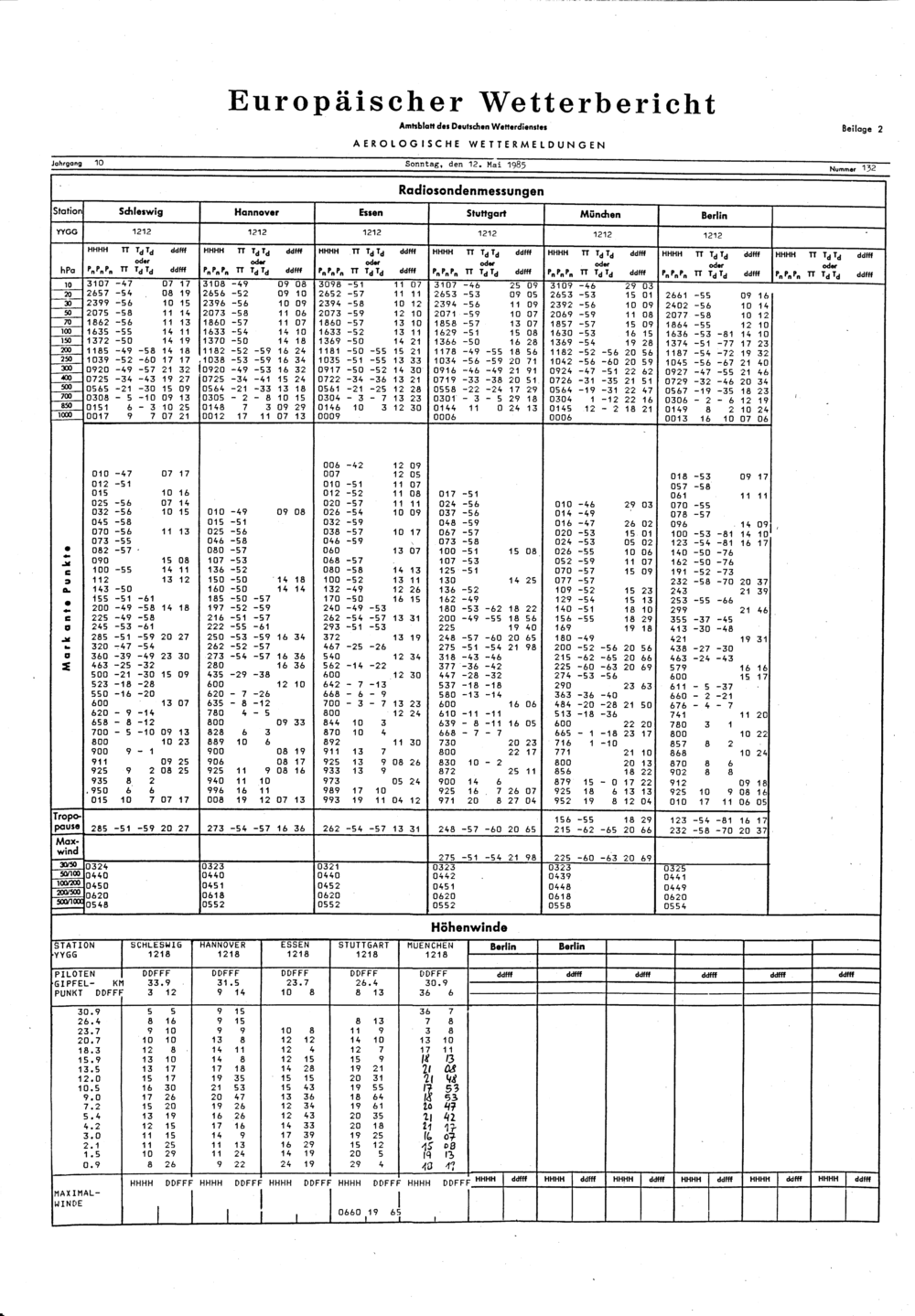 Europäischer Wetterbericht. Beilage 1, Bodenwettermeldungen. 1976-1994