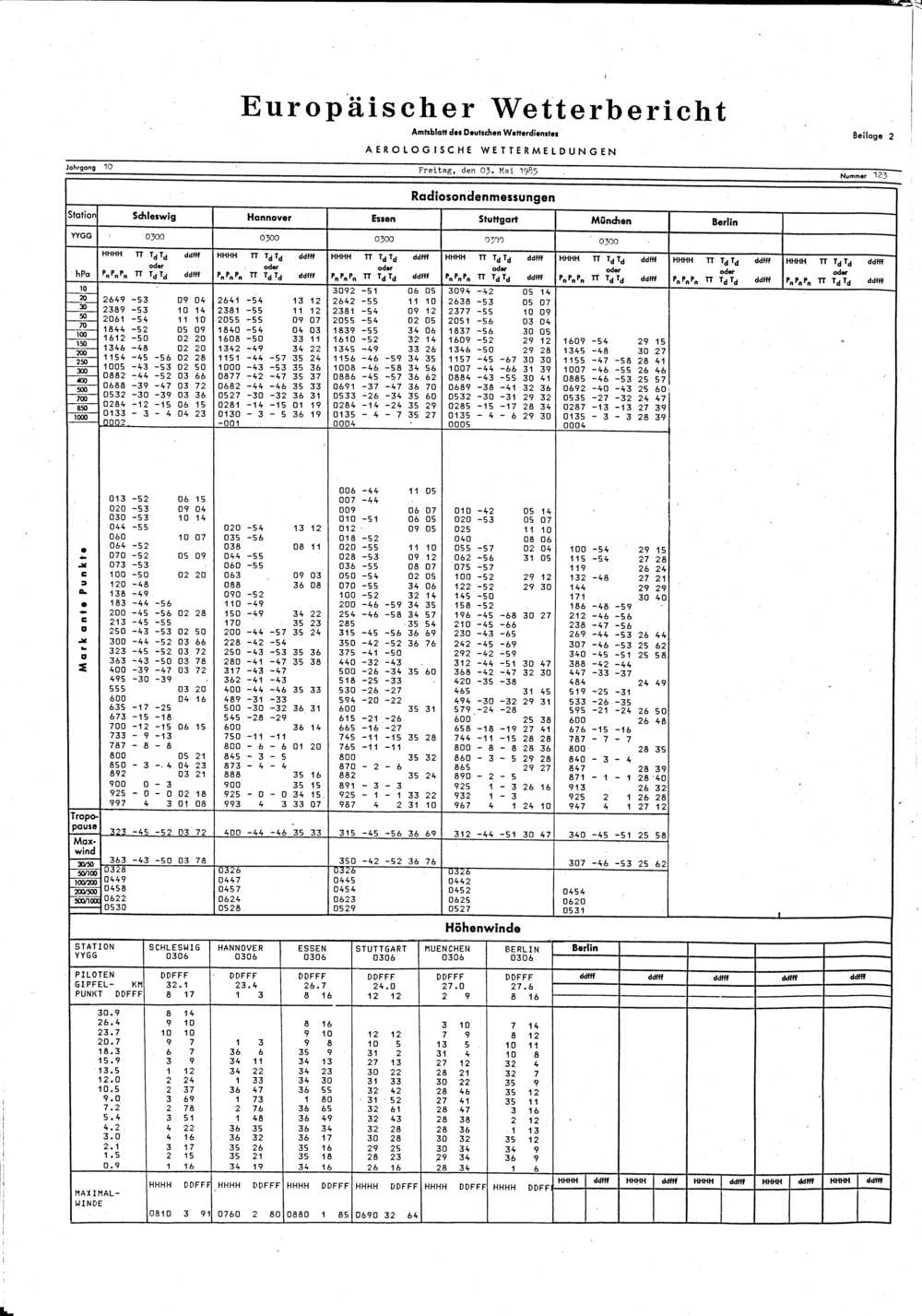 Europäischer Wetterbericht. Beilage 1, Bodenwettermeldungen. 1976-1994