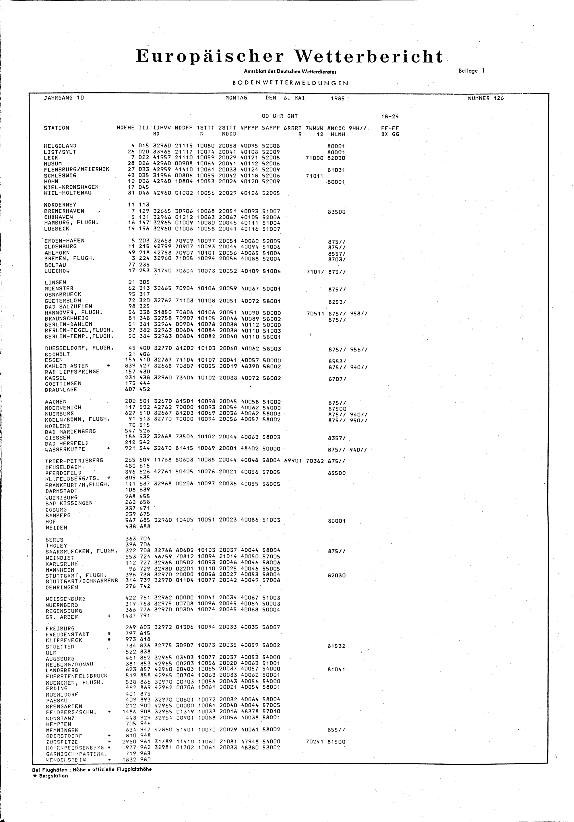 Europäischer Wetterbericht. Beilage 1, Bodenwettermeldungen. 1976-1994