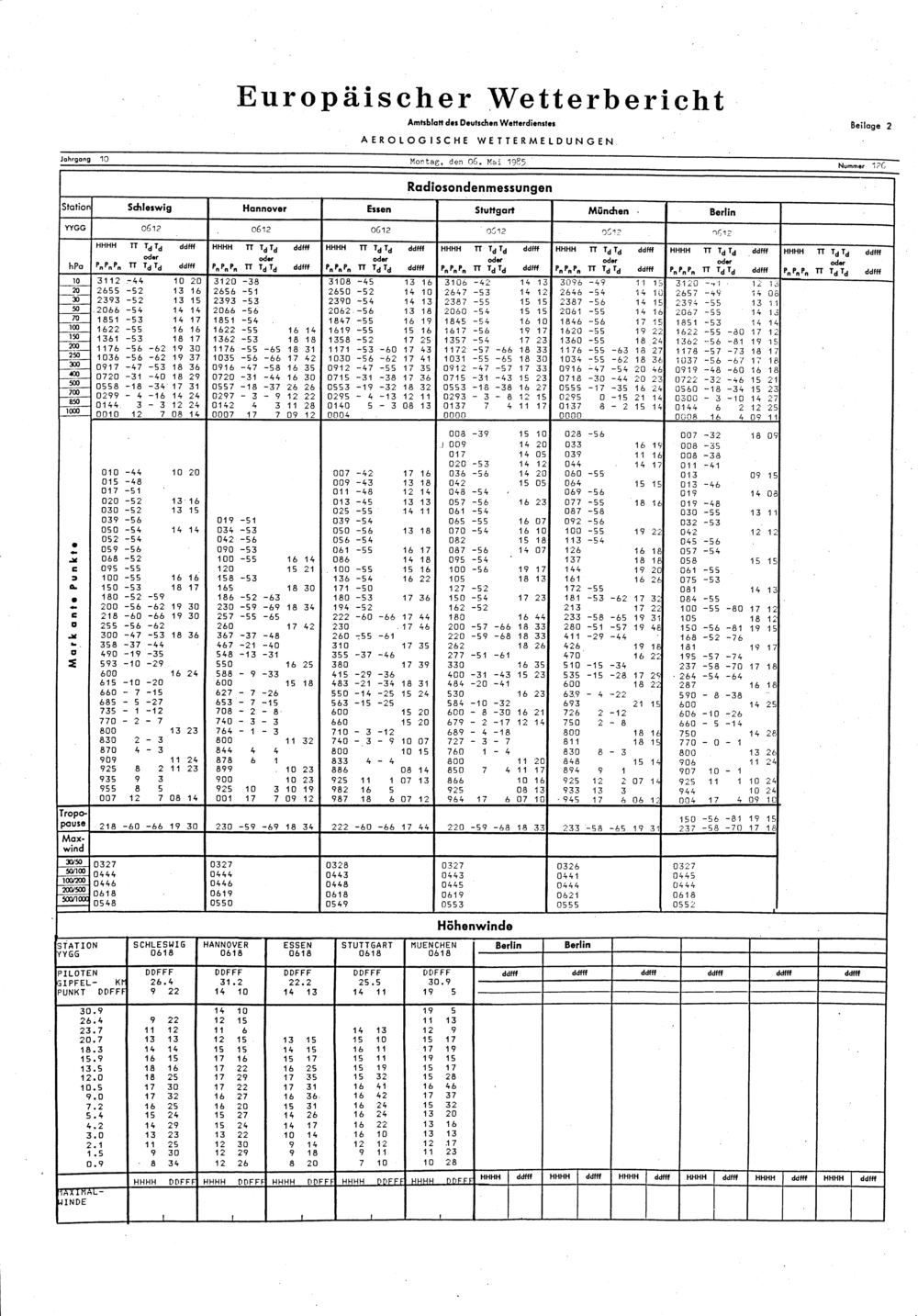 Europäischer Wetterbericht. Beilage 1, Bodenwettermeldungen. 1976-1994