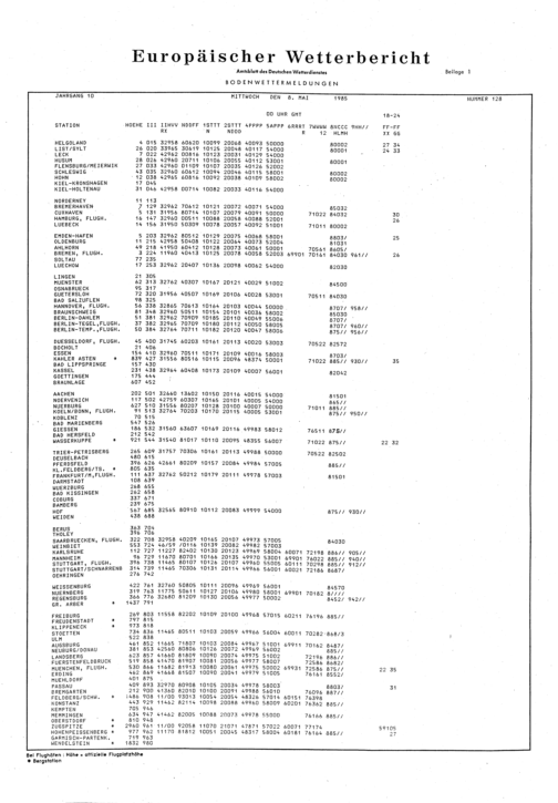 Europäischer Wetterbericht. Beilage 1, Bodenwettermeldungen. 1976-1994