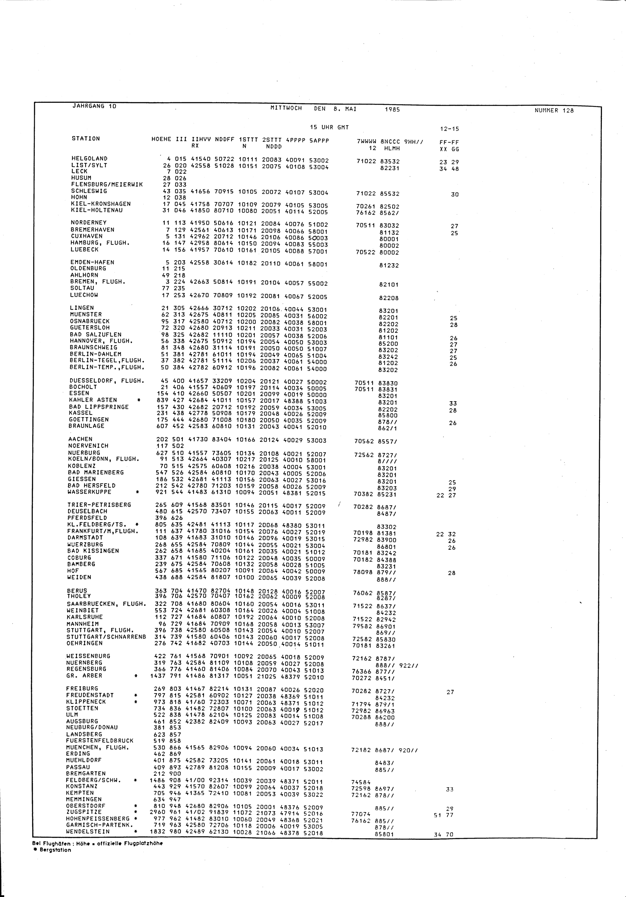 Europäischer Wetterbericht. Beilage 1, Bodenwettermeldungen. 1976-1994