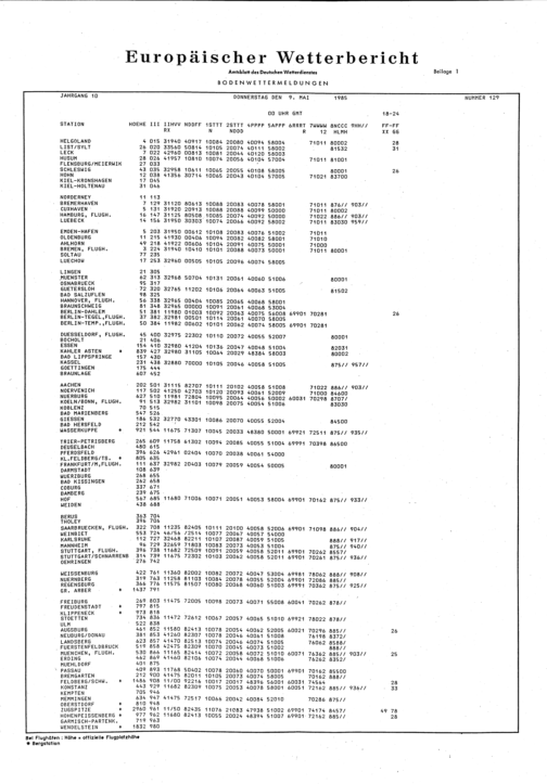 Europäischer Wetterbericht. Beilage 1, Bodenwettermeldungen. 1976-1994