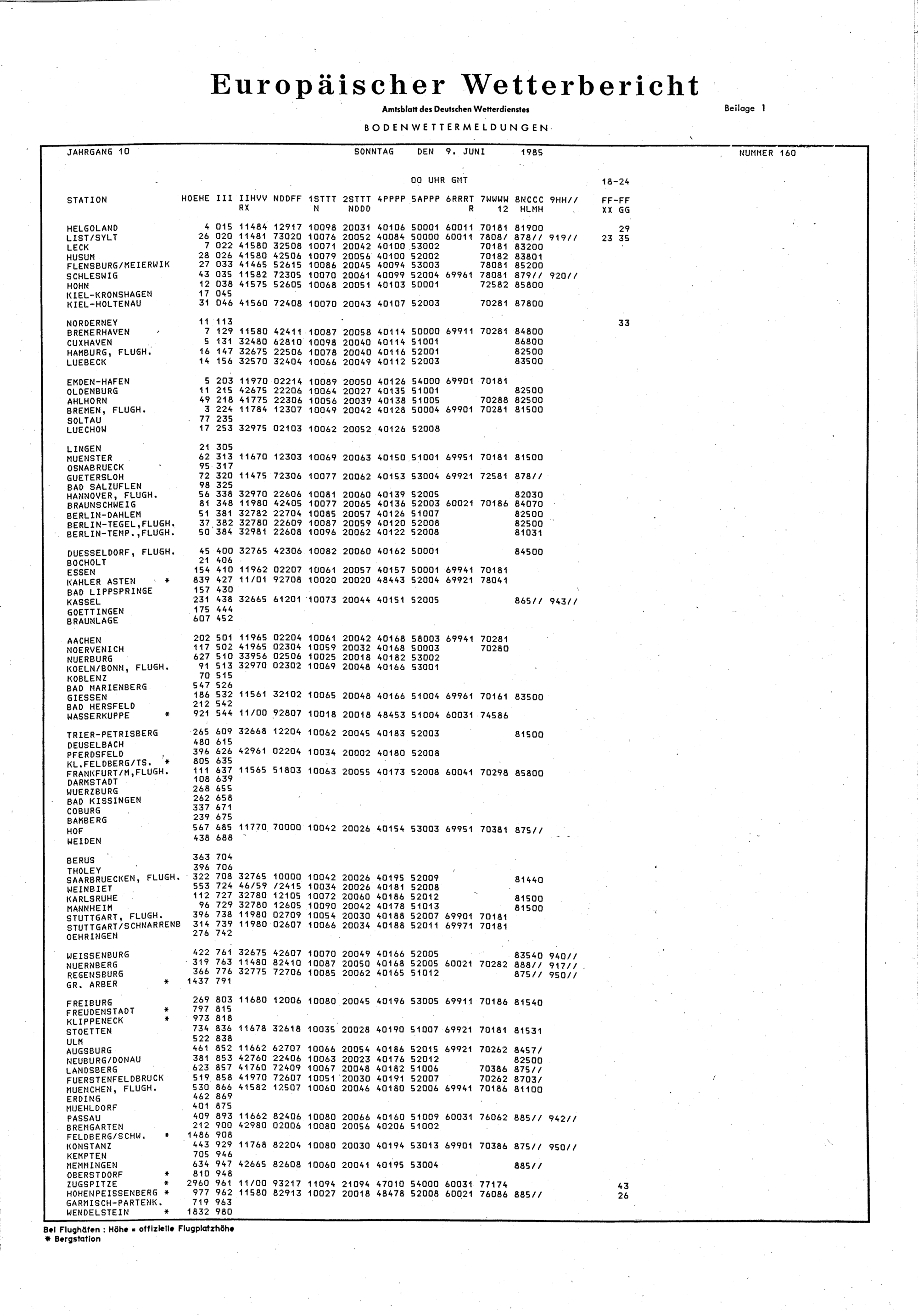 Europäischer Wetterbericht. Beilage 1, Bodenwettermeldungen. 1976-1994