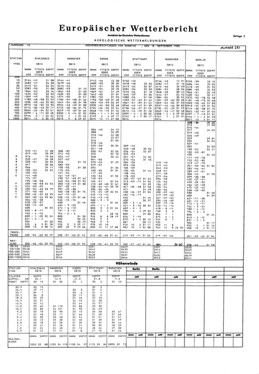Europäischer Wetterbericht. Beilage 1, Bodenwettermeldungen. 1976-1994