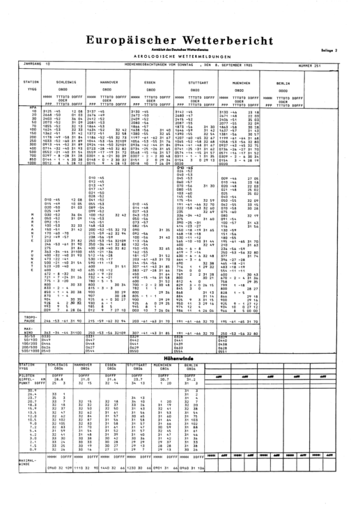 Europäischer Wetterbericht. Beilage 1, Bodenwettermeldungen. 1976-1994