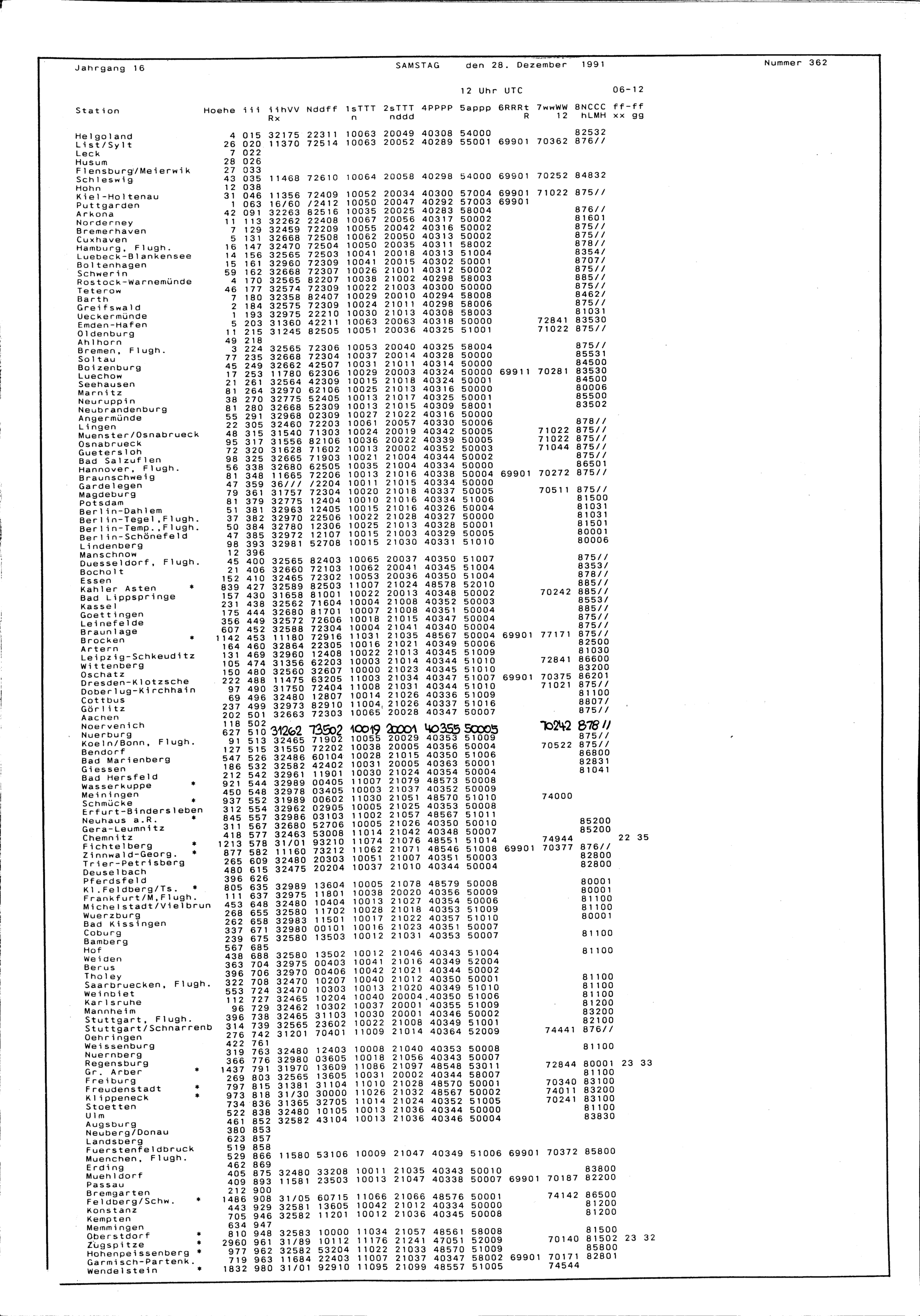 16 (28.12.1991) Daten
