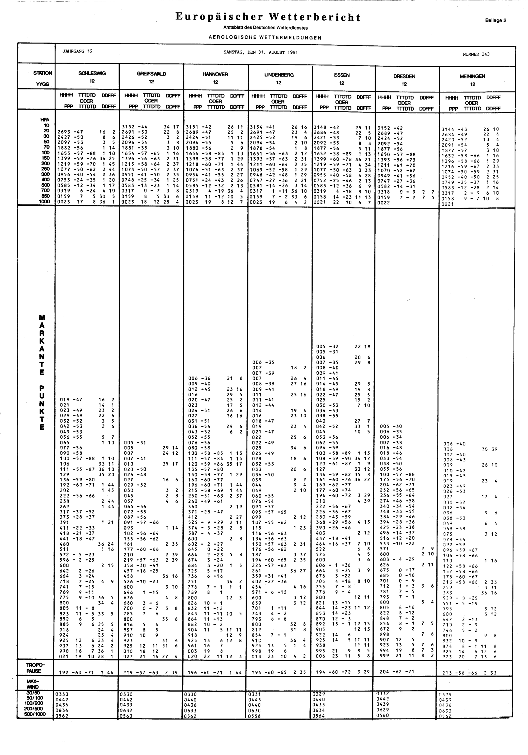 16 (31.8.1991) Daten
