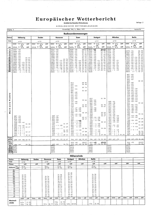 Europäischer Wetterbericht. Beilage 1, Bodenwettermeldungen. 1976-1994