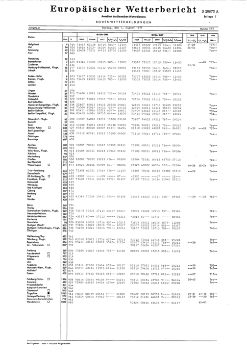 Europäischer Wetterbericht. Beilage 1, Bodenwettermeldungen. 1976-1994