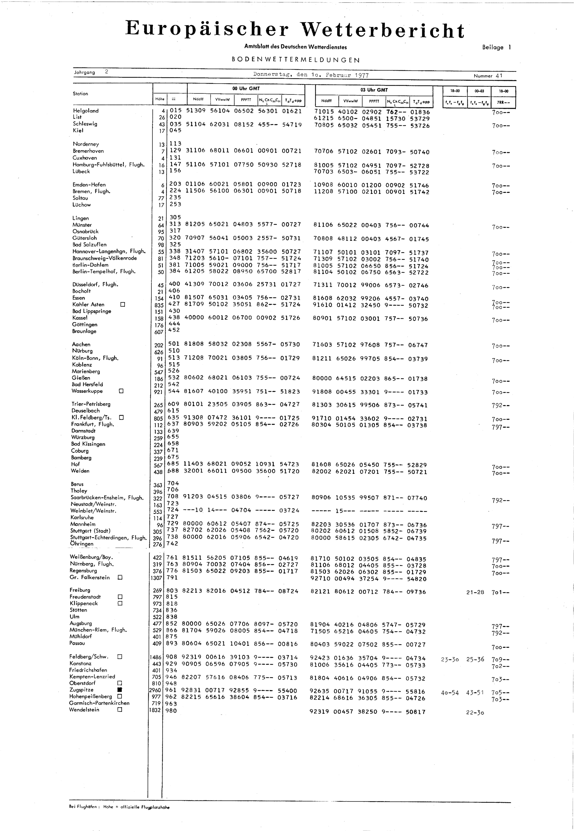 Europäischer Wetterbericht. Beilage 1, Bodenwettermeldungen. 1976-1994