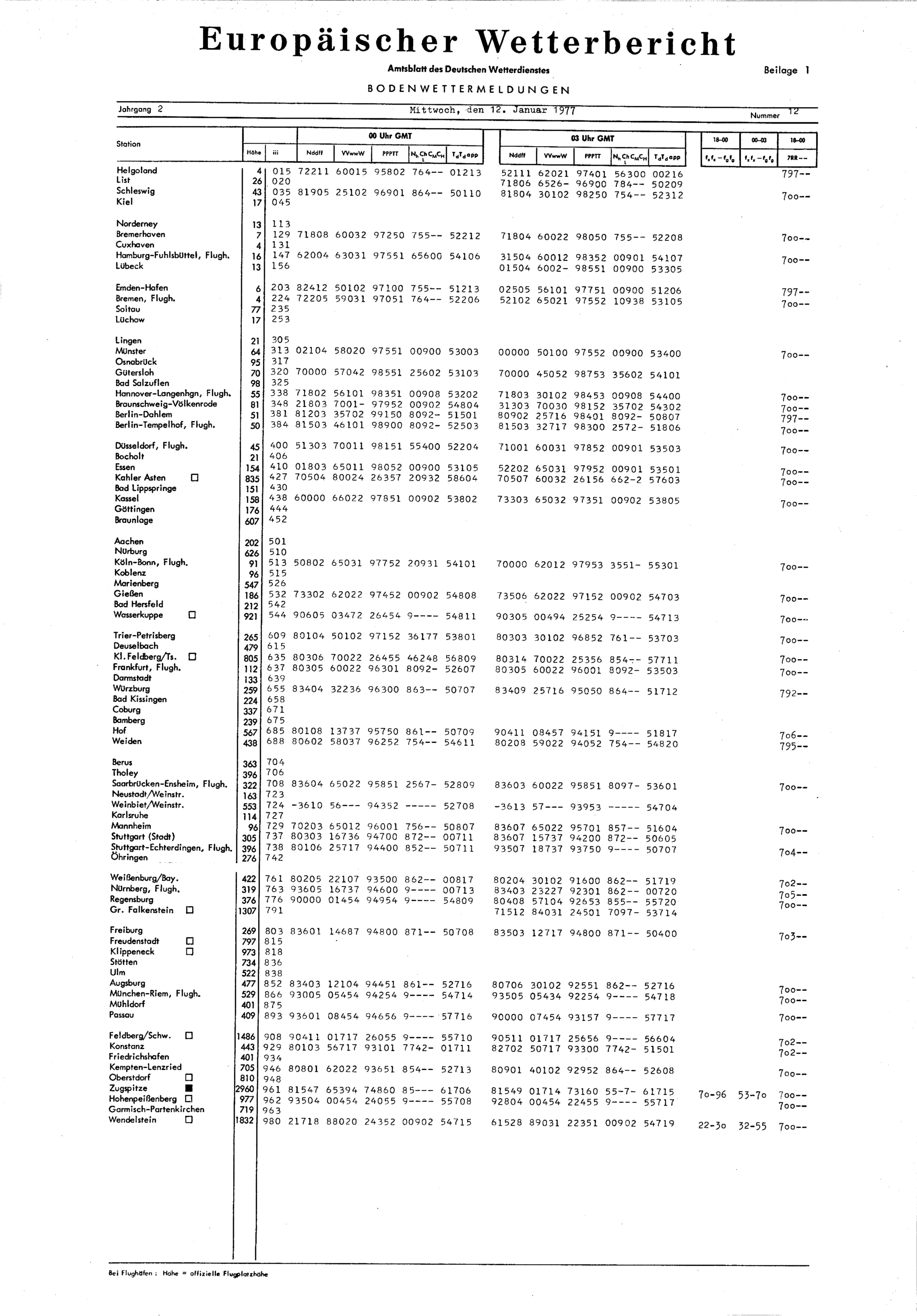 Europäischer Wetterbericht. Beilage 1, Bodenwettermeldungen. 1976-1994