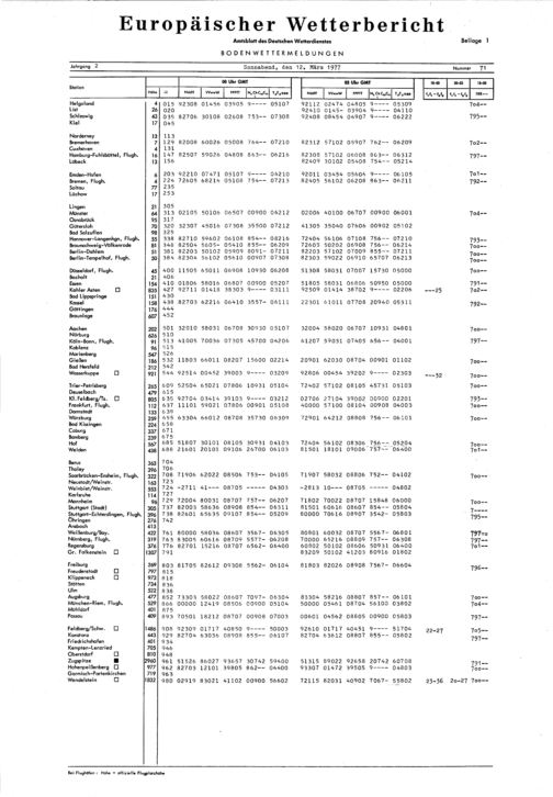 Europäischer Wetterbericht. Beilage 1, Bodenwettermeldungen. 1976-1994