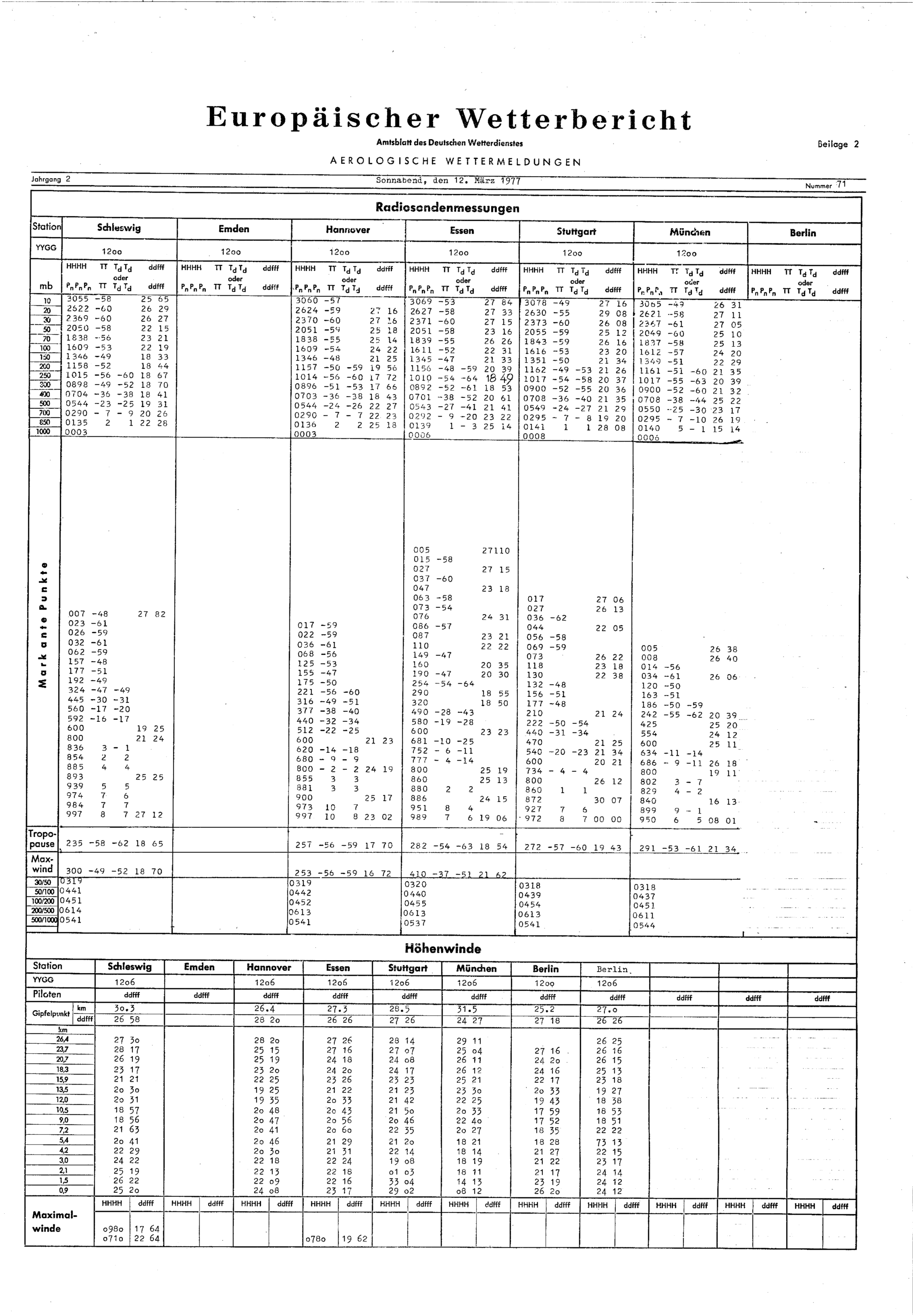 Europäischer Wetterbericht. Beilage 1, Bodenwettermeldungen. 1976-1994